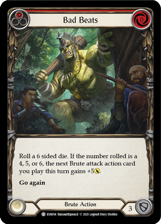Roll a 6 sided die. If the number rolled is a 4, 5, or 6, the next Brute attack action card you play this turn gains +5[Power].