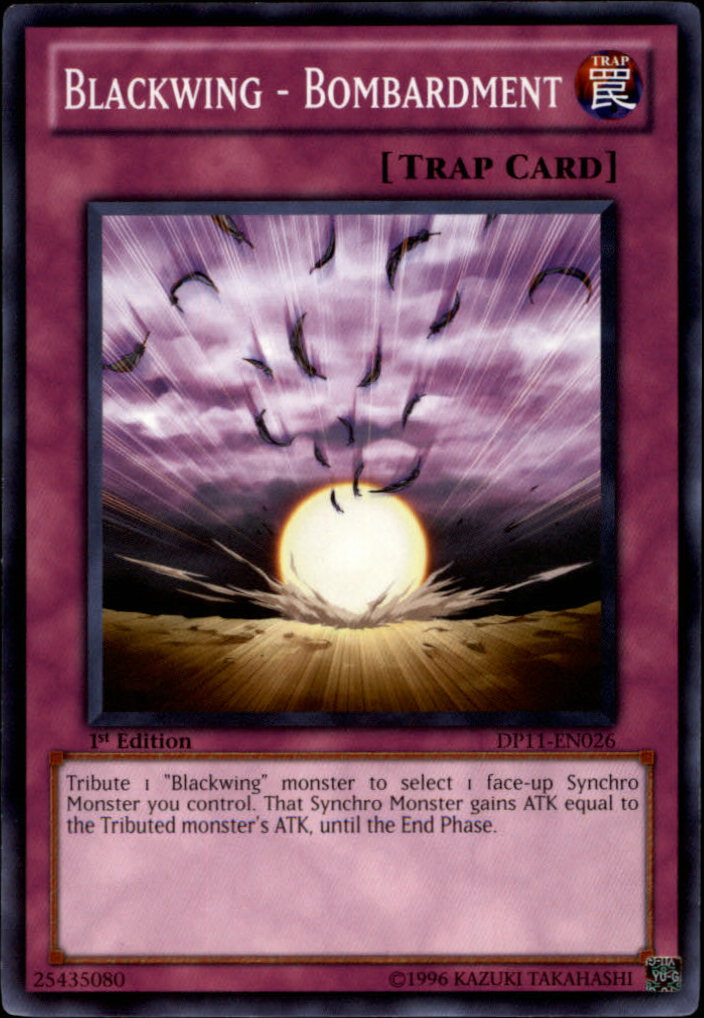 Tribute 1 "Blackwing" monster to select 1 face-up Synchro Monster you control. That Synchro Monster gains ATK equal to the Tributed monster's ATK, until the End Phase.